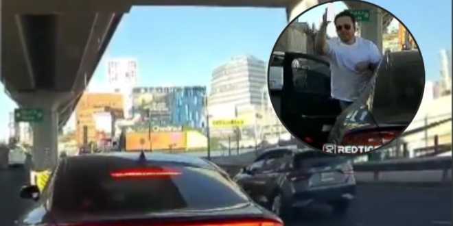 Sin embargo, tras el polémico confrontamiento por el aparente desacuerdo vial, las imágenes del conductor han circulado en las redes sociales, luego de que se le captara, luciendo con un arma de fuego, con unos lentes de sol, una playera blanca y unos jeans negros.
