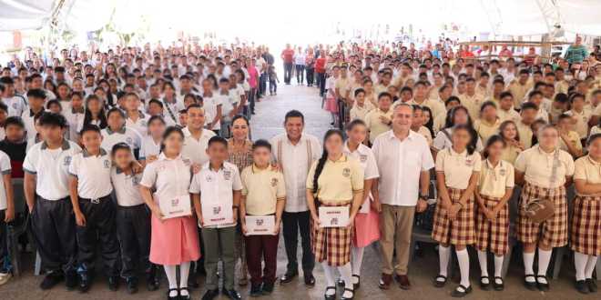 “Desde hace dos días empezamos la entrega de tabletas electrónicas a todos los alumnos de primer nivel de secundaria. Vamos a entregar más de 42 mil tabletas, llevamos ocho municipios, faltan nueve. La semana próxima entregaremos todas porque este Gobierno tiene la confianza en ustedes. Y lo que estamos haciendo va cayendo en semilla fértil”, resumió en una aplaudiera y silbadera que hizo volar los zanates de los árboles próximos