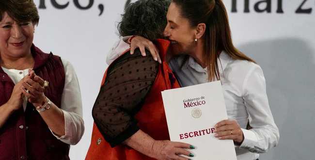 La Presidenta Claudia Sheinbaum Pardo dio inicio a la conmemoración del Día internacional de la Mujer con la entrega de 500 escrituras del Instituto Nacional del Suelo Sustentable (Insus) y 447 constancias de condonación de créditos del Instituto de Seguridad y Servicios Sociales de los Trabajadores del Estado (Fovissste) a mujeres del municipio de Tecámac, en el Estado de México, como parte de un conjunto de acciones que realizará este mes para reconocer a todas las mujeres del país.