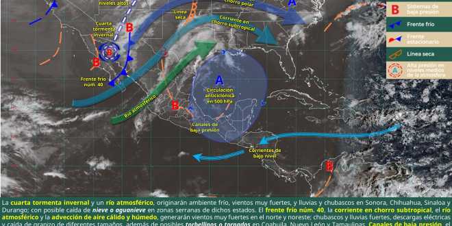 de México, la corriente en chorro subtropical, un río atmosférico, la advección de aire cálido y