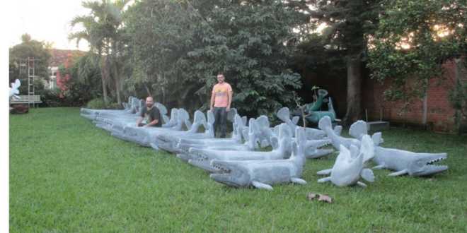 El proyecto, diseñado por Eduardo Alcántara y coordinado junto con el artista plástico Andrés Pedrero, consiste en 32 esculturas de fibra de vidrio de 2.30 metros de largo por 80 centímetros de ancho, cuya morfología rinde homenaje a la escultura monolítica prehispánica. “Escogimos el pejelagarto porque es un símbolo icónico del Estado y de los tabasqueños”, explicó Pedrero en entrevista con Novedades de Tabasco.