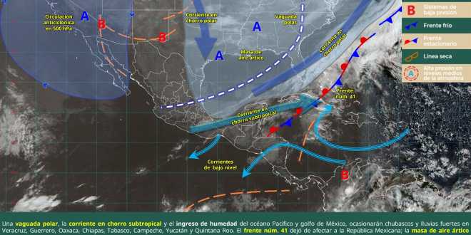 de México, y la masa de aire ártico que empezará a modificar sus características térmicas.
