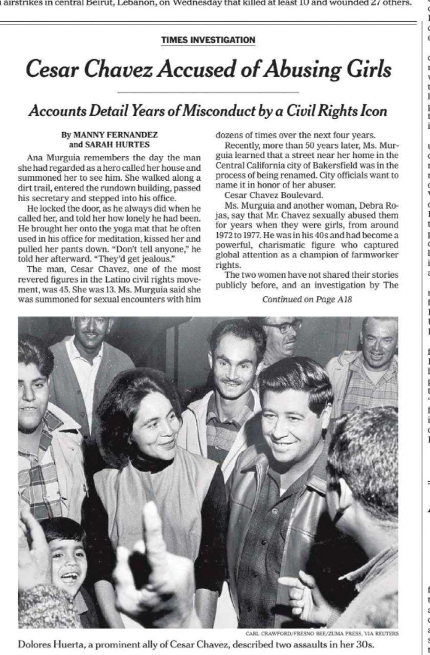 El legado de César Chávez, una de las figuras más emblemáticas del movimiento por los derechos civiles de los latinos en Estados Unidos, se encuentra en el centro de la polémica tras la difusión de graves acusaciones en su contra.