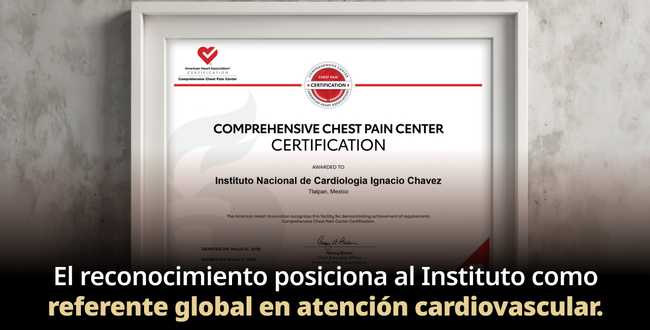 Como parte de este esfuerzo, la American Heart Association también otorgó al Instituto la certificación como Centro Integral de Dolor Torácico, reconocimiento que avala la existencia de personal altamente capacitado, procesos estandarizados y tecnología especializada para la evaluación, diagnóstico y tratamiento oportuno de pacientes con dolor torácico y síndromes coronarios agudos.