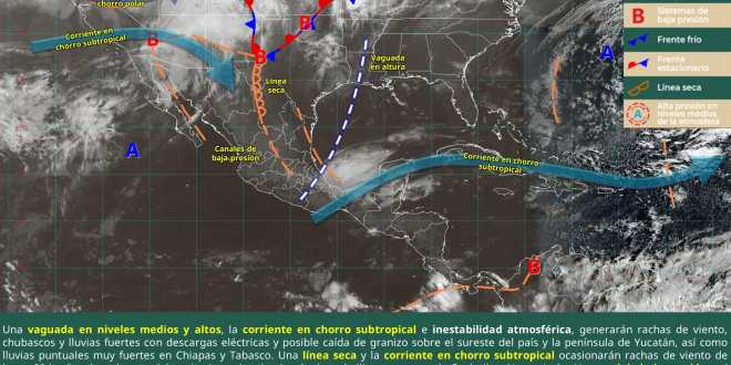 Chiapas y Tabasco; fuertes (de 25 a 50 mm) en Oaxaca, Veracruz, Campeche, Yucatán y