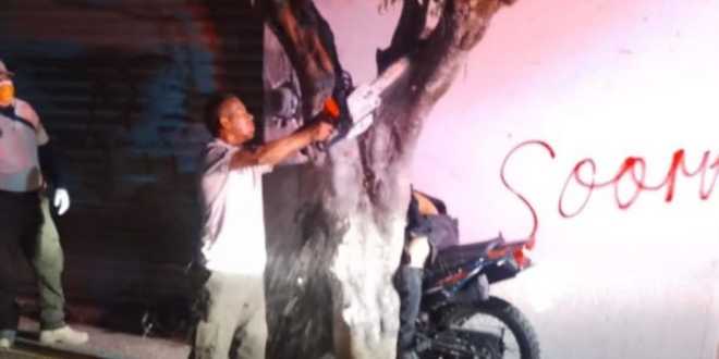 Elementos de rescate trabajaron durante varios minutos para liberarlo, utilizando incluso equipo especializado para cortar parte del árbol.