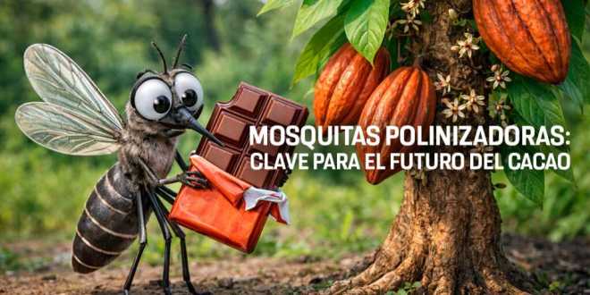 Cuando pensamos en el chocolate, rara vez imaginamos a los pequeños héroes que lo hacen posible mucho antes de que llegue a nuestras manos: unos mosquitos diminutos, casi imperceptibles a simple vista. Sin embargo, están amenazados por el cambio climático, los fertilizantes (que pueden alterar el equilibrio ecológico) y los plaguicidas e insecticidas.