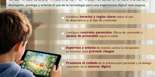 La Secretaría de Seguridad y Protección Ciudadana (SSPC), a través de la Unidad de Inteligencia, Investigación Cibernética y Operaciones Tecnológicas, emite recomendaciones para el uso responsable de dispositivos móviles por parte de niñas, niños y adolescentes, con el objetivo de fortalecer la protección de los entornos digitales que utilizan, mediante la implementación de controles parentales.