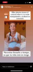 Mediante su línea de historias, Melissa hace un llamado urgente a padres para que traten el tema con sus hijos, varones o niñas, para que aborden el asunto de la extorsión mediante el “sexting” que es un delito que se sanciona con prisión, para que los escuchen, comprendan, las liberen de esa presión y no las juzguen, el llamado es urgente, es de suma importancia, no sabemos cuánta gente enferma está delinquiendo en esos chat.