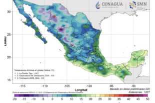 Para este jueves, se pronostica ambiente matutino de muy frío a gélido en sierras del noroeste, norte, noreste, occidente, centro y oriente de México, con temperaturas mínimas de -15 a -10 grados Celsius y heladas en sierras de Chihuahua y Durango; de -10 a -5 grados Celsius y heladas en …