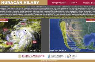 Hilary, que la madrugada de hoy 17 de agosto de 2023 se intensificó a huracán, alcanzó este mediodía la categoría 2 en la escala de Saffir-Simpson frente a costas de Jalisco y provocará lluvias de muy fuertes a fuertes en 14 estados del país. El ciclón pasó de huracán categoría …