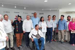 El secretario de turismo, Miguel Torruco Márquez entrega el distintivo a las autoridades del municipio en un acto protocolario en el Lobby del Centro Cultural Villahermosa, donde estuvo acompañado del gobernador del estado Carlos Manuel Campos Merino, el secretario de turismo del estado, José Antonio Nieves, la alcaldesa de Centro, …