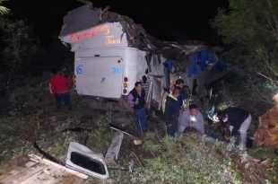 Imágenes del camión de pasajeros que sufrió una volcadura, a altas horas de la noche de este sábado, a la altura del poblado Felipe Carrillo Puerto-Chetumal. En el lugar se observa al pesado camión dentro de la maleza, y los cuerpos de los viajeros accidentados. De acuerdo con información oficial …