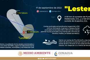 La tormenta tropical ‘Lester’ mantendrá su desplazamiento hacia las costas de Guerrero en las próximas horas, sus bandas nubosas ocasionarán lluvias torrenciales en Guerrero y Oaxaca, e intensas en Puebla, así lo señaló la Comisión Nacional del Agua (Conagua). Mira también: Vestido de Beatriz Gutiérrez Müller se vuelve tendencia en …