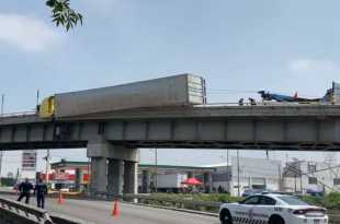 Un tráiler quedó volcado sobre el muro de contención y a punto de caer en la incorporación del Circuito Exterior Mexiquense (CEM) hacia la autopista México-Querétaro. No hay reporte de personas lesionadas. Los hechos ocurren a la altura del kilómetro 34 de la autopista, en dirección hacia la caseta de …