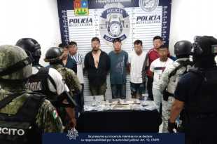 En una rápida intervención, policías de la Secretaría de Seguridad Pública y Tránsito Municipal de Solidaridad en coordinación con elementos de la SEDENA, MARINA, Guardia Nacional y Policía Quintana Roo, aseguraron a 7 sujetos, 3 armas de fuego y 31 bolsitas con narcóticos luego de un reporte de detonaciones de …