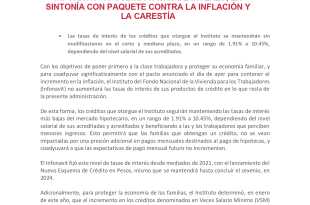 El Instituto del Fondo Nacional de Vivienda para los Trabajadores (Infonavit) anunció que no subirá las tasas de interés hasta el 2024, con lo que, dijeron, se suman “al paquete contra la inflación”. “Para proteger tu economía, en el Infonavit no subiremos nuestras tasas de interés en lo que resta …