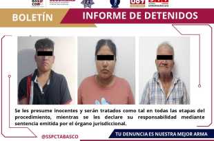 Como resultados de las estrategias de seguridad implementadas en la capital del Estado, la Secretaría de Seguridad y Protección Ciudadana (SSPC) en coordinación con la Fuerza Interinstitucional de Reacción Táctica (FIRT) Olmeca detuvieron a tres personas por el presunto delito de suministro de narcóticos. En recorridos preventivos en la ranchería …