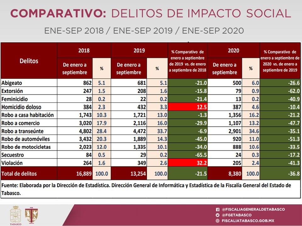 En lo que va del año, los delitos de impacto social en Tabasco disminuyeron 50.38 por ciento, comparado con el 2018; esta tendencia a la baja se ha mantenido desde el año pasado, con el trabajo coordinado de las instituciones de seguridad y justicia de los tres órdenes de gobierno. …