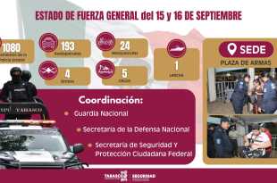 Listo Operativo de Operativo de Seguridad de la SSPC de Tabasco para los festejos por ‘El Grito de Independencia’