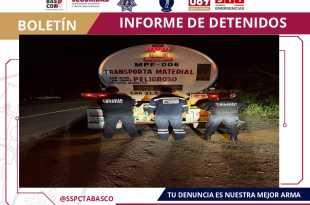 Elementos del Grupo Especial Tabscoob pertenecientes a la Secretaría de Seguridad y Protección Ciudadana (SSPC), en coordinación con la Fuerza Interinstitucional de Reacción Táctica (FIRT) Olmeca, logró la detención de un masculino por el presunto delito de transporte de hidrocarburo de procedencia ilícita. Como parte del Plan de Contención del …