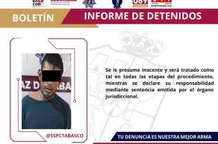 En recorridos preventivos en la ranchería Samarkanda, agentes de la Secretaría de Seguridad y Protección Ciudadana (SSPC) en coordinación con la Fuerza Interinstitucional de Reacción Táctica (FIRT) Olmeca, llevaron a cabo la detención de un masculino como presunto responsable por el delito de robo con violencia y presunto responsable de …
