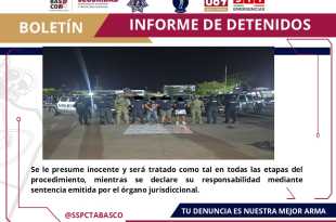La Secretaría de Seguridad y Protección Ciudadana (SSPC), en coordinación con la Fuerza Interinstitucional de Reacción Táctica (FIRT) Olmeca, llevó a cabo la detención de cuatro masculinos, por el probable delito de posesión simple. Los elementos lograron la detención de Bryan “N” de 20 años, Alejandro “N” de 24 años, …