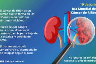 La Secretaría de Salud del Gobierno de México invita a la población a prevenir el cáncer de riñón, que afecta con mayor frecuencia a personas mayores de 50 años, a través de una alimentación sana, la realización de actividades físicas, así como mantener control en los niveles de azúcar, presión …