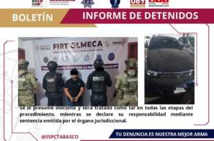 La Fuerza Interinstitucional de Reacción Táctica (FIRT) Olmeca, realizó labores de vigilancia y prevención del delito en el municipio de Cunduacán, logrando la detención de un masculino quien responde al nombre de José Alberto “N”. El aseguramiento se llevó a cabo durante un recorrido de rutina en la carretera Cárdenas-Villahermosa …