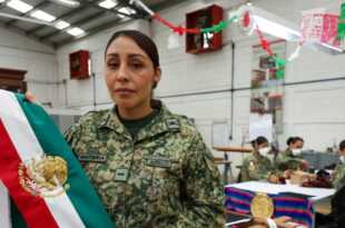 En su mesa de trabajo, con paciencia y dedicación, la soldado Primera Auxiliar, Evangelina Rentería de la Cruz, borda el Escudo Nacional de la Banda Presidencial con la que se hará historia la próxima semana, cuando se ciña por primera ocasión en la primera mujer presidenta del país: Claudia Sheinbaum …