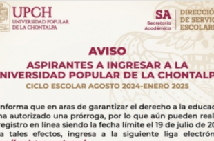 Para garantizar que los egresados del nivel medio superior tengan un espacio en su formación profesional, la Universidad Popular de la Chontalpa abrió un segundo periodo de admisión para quienes deseen cursar alguna de sus carreras como alumnos de nuevo ingreso, dio a conocer su rector Mauro Winzig Negrín. De …