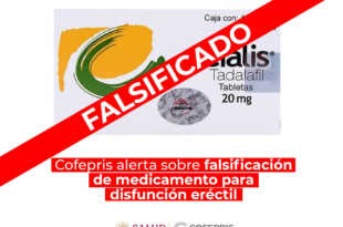 La Comisión Federal para la Protección contra Riesgos Sanitarios (Cofepris) alerta sobre la falsificación y venta ilegal de Cialis (tadalafil) tableta 20 mg, caja con cuatro tabletas, indicado para disfunción eréctil e hiperplasia prostática, de la empresa Eli Lilly y Compañía de México. El titular del registro notificó a esta …