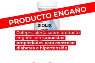 La Comisión Federal para la Protección contra Riesgos Sanitarios (Cofepris) alerta a la población sobre la comercialización de Diolix, presentación cápsulas, que se promociona indebidamente como suplemento dietético para el manejo de diabetes y presión arterial alta. Diolix se presenta como suplemento dietético que asegura estabilizar la glucosa y la …
