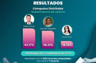 El Instituto Electoral y de Participación Ciudadana (IEPC) de Jalisco confirmó la victoria de Pablo Lemus, candidato de Movimiento Ciudadano, como Gobernador del estado tras los comicios del pasado domingo 2 de junio. Con el 100% de las actas computadas a nivel distrital, Lemus se impuso con un 43.17% de …
