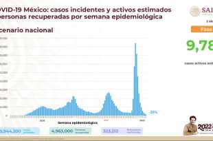 La semana epidemiológica cierra con 35 por ciento menos casos estimados de COVID-19 en comparación con el periodo previo; mientras que, en los últimos 14 días, nueve mil 784 personas presentaron signos y síntomas, quienes representan los casos activos y equivalen a 0.2 por ciento del total registrado durante la …