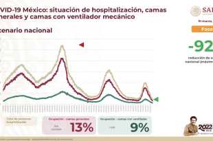 México cuenta con disponibilidad de 87 por ciento de camas generales y 91 por ciento con respirador mecánico para la atención de pacientes con COVID-19, informó la Secretaría de Salud en el Informe Técnico Diario. Asimismo, muestra reducción de 92 por ciento en ocupación hospitalaria, en comparación con el máximo …