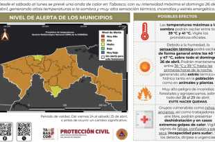 Se exhorta a la ciudadanía a tomar precauciones, evitar la exposición prolongada al sol y mantenerse hidratados. Asimismo, es importante mantenerse informados a través de los canales oficiales Villahermosa, Tabasco, 24 de abril del 2026.- El Instituto de Protección Civil del Estado de Tabasco (IPCET), informa que, desde el sábado …