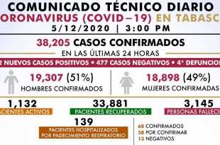 La Secretaría de Salud del Estado reportó este sábado 202 nuevos casos de COVID-19 y el fallecimiento de 4 personas más como consecuencia de la enfermedad en Tabasco, por lo que advirtió una vez más a la población que aún ‘no es momento de bajar la guardia ni de relajarse’, …