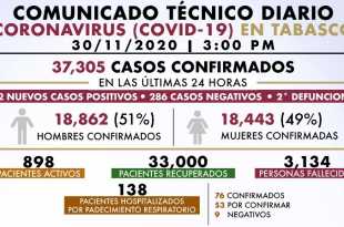 Al 30 de noviembre de 2020 hay 1,113,543 casos confirmados #COVID19. Se han registrado 1,356,344 negativos, 105,940 defunciones confirmadas y 823,586 personas recuperadas. A nivel nacional, el 38% de camas de hospitalización general y el 31% de camas con ventiladores están ocupadas.