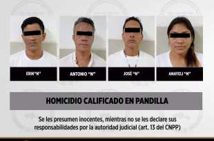 La Fiscalía General del Estado (FGE) dio cumplimiento a cuatro órdenes de aprehensión por reclusión, en contra de Erick “N”, Antonio “N”, José “N” y Anayeli “N”, por el delito de homicidio calificado en pandilla. A los antes citados se les presume inocentes y serán tratados como tal en todas …