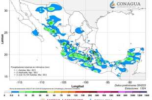 El pronóstico meteorológico para hoy, sábado, es de lluvias muy fuertes (de 50 a 75 milímetros [mm]) en Campeche, Chiapas, Colima, Jalisco, Guerrero, Michoacán, Tabasco, Oaxaca y el sur de Veracruz; fuertes (de 25 a 50 mm) en Chihuahua, Durango, Estado de México, Morelos, Nayarit, Puebla, Quintana Roo, Sinaloa, Sonora …