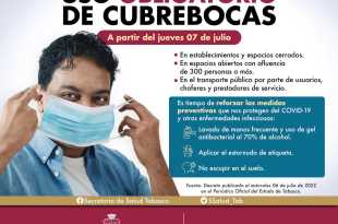 Leer másRegresa el uso obligatorio de cubrebocas en Tabasco