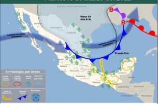Hoy, el Frente Frío Número 36 se extenderá desde el norte del Golfo de México y cruzará el sureste del país y el occidente de la Península de Yucatán; a su paso propiciará lluvias puntuales intensas (de 75 a 150 milímetros [mm]) en Chiapas; muy fuertes (de 50 a 75 …