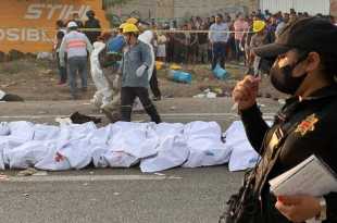 El número de migrantes muertos al volcar un camión este jueves en una carretera de Chiapas subió a 55, informaron autoridades del Gobierno mexicano. Según el reporte de la Fiscalía del Estado, el tráiler chocó con la pared del muro de un puente peatonal, tras impacto la caja quedó sin …