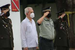 El secretario de Gobierno, Guillermo Arturo del Rivero León y la presidenta del Sistema DIF Tabasco, Guadalupe Castro de Merino, encabezaron la Ceremonia de Conmemoración del 111 Aniversario del Inicio de la Revolución Mexicana. Acompañados por autoridades militares, estatales y municipales colocaron ofrenda floral y montaron guardia de honor ante …