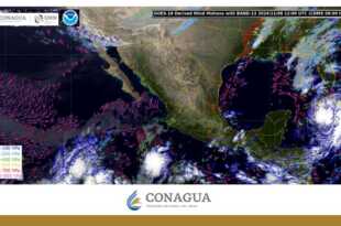 Hoy se pronostican lluvias puntuales muy fuertes (de 50 a 75 milímetros [mm]) en regiones de Chiapas; fuertes (de 25 a 50 mm) en zonas de Campeche, Guerrero, Oaxaca, Quintana Roo, Tabasco y Yucatán; intervalos de chubascos (de 5 a 25 mm) en Puebla, San Luis Potosí, Tamaulipas y Veracruz, …