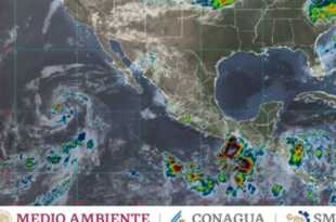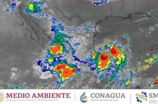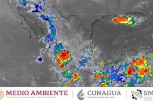 Hoy, es espera que el monzón mexicano genere lluvias puntuales muy fuertes (de 50 a 75 milímetros [mm]) en Chihuahua, Durango, Sinaloa y Sonora, así como lluvias aisladas (de 0.1 a 5 mm) en zonas de Baja California y Baja California Sur. A su vez, un canal de baja presión …