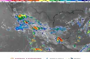 Hoy martes, se pronostican lluvias intensas (de 75 a 150 milímetros [mm]) en Colima, Jalisco y Nayarit; muy fuertes (de 50 a 75 mm) en el Estado de México, Guanajuato, Guerrero, Hidalgo, Michoacán, Querétaro y Sinaloa; fuertes (de 25 a 50 mm) en Aguascalientes, Ciudad de México, Durango, Morelos, Oaxaca, …