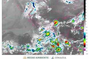El SMN mantiene en vigilancia una zona de baja presión en el Océano Pacífico con posibilidad de desarrollo ciclónico. Durante este día, se pronostican lluvias puntuales intensas (de 75.1 a 150 milímetros [mm]) en zonas de Chiapas, Guerrero, Jalisco, Nayarit y Oaxaca; puntuales muy fuertes (de 50.1 a 75 mm) …