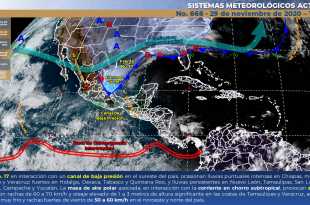 Hoy lunes 30 de noviembre, un canal de baja presión en el sureste de México y el desplazamiento del Frente Frío Número 17 por el noreste del Golfo de México y el sur del país, ocasionarán lluvias torrenciales (de 150 a 250 milímetros [mm]) en Chiapas, Oaxaca y Tabasco; intensas …